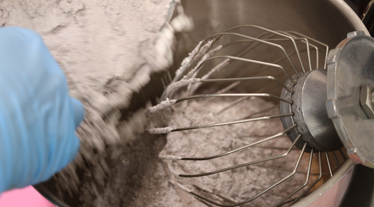 別で混ぜておいた粉類もミキサーボールに入れてよく混ぜます。