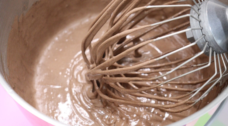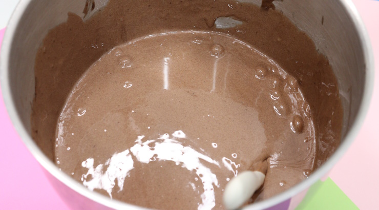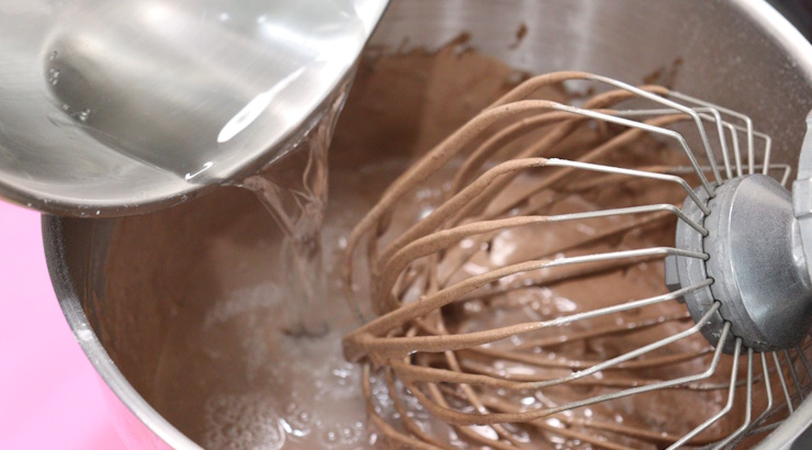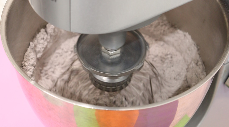 粉類がよく混ざったら水を加え低速で1分ほど混ぜます