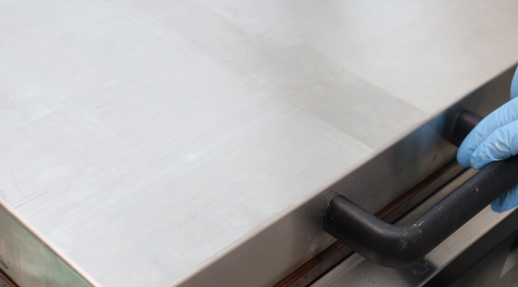 離型油(ビタカットSL)を銅板に塗ります。