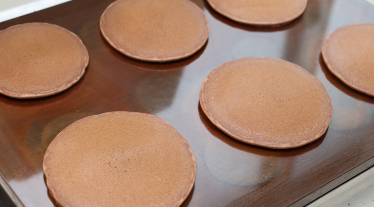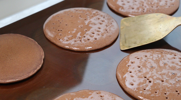 今回はチョコレートのふわふわどら焼を作ってみました!ココアをたっぷり入れ、パンケーキとどら焼の中間のような仕上がりを目指しました!